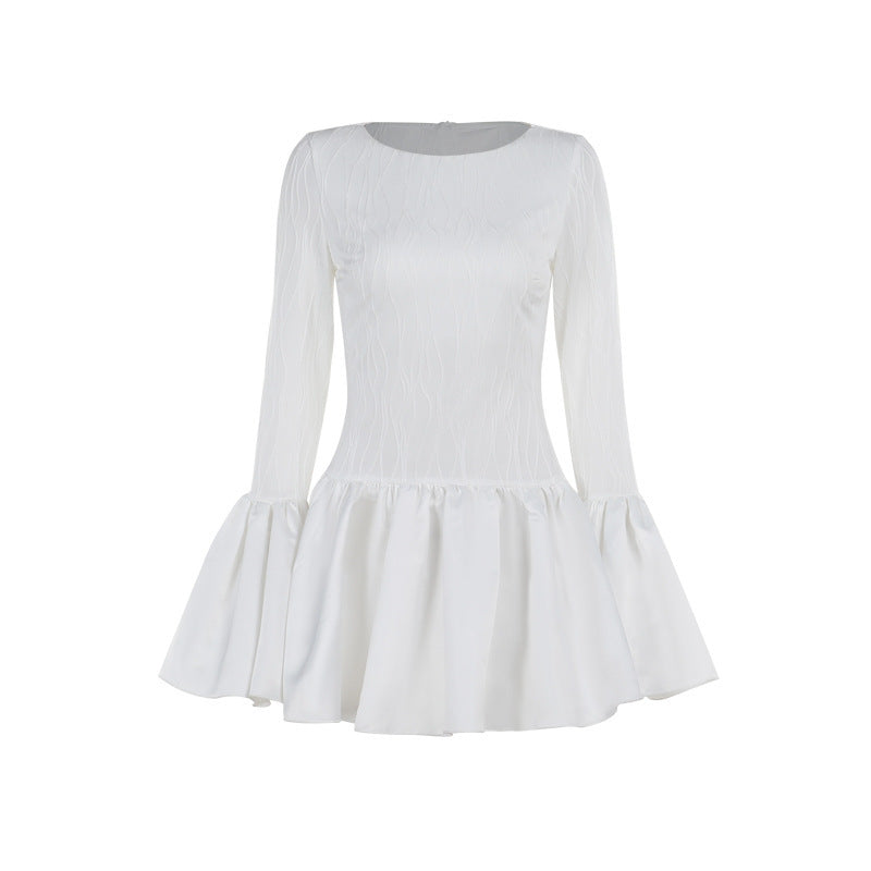 Fall Slim Fit Texture Long Sleeve Ruffled Mini Dress