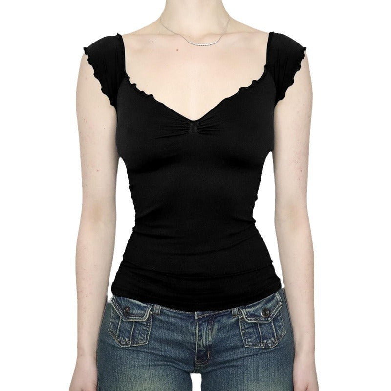 Lace Chest-shaped Waist-tight Exposed Back Short-sleeved Slimming Top