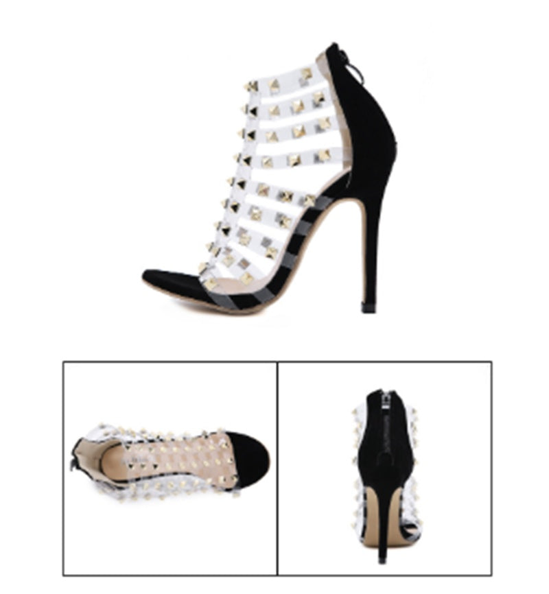 Roman Style Rivet Hollow Transparent 12 cm High Heel Sandals