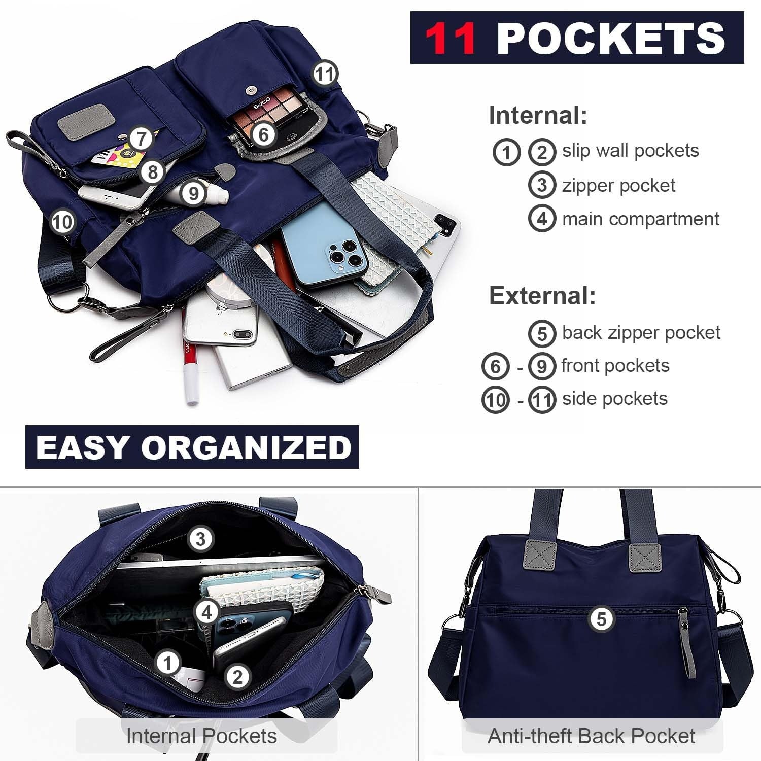 Tote Bag For Women, Multi Pockets Shoulder Handbag, Nurse Bag For Work, Large Cross Body Purse, Fashion Nylon Top Handle Satchel